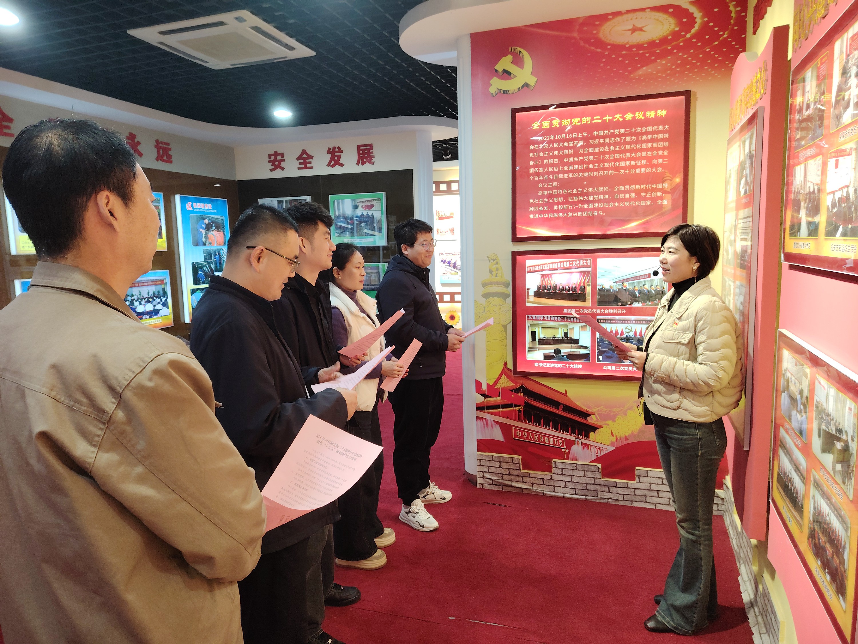 活動中,宣講團隊通過“區(qū)隊微宣講、陣地小講堂”等形式,深入生產(chǎn)區(qū)隊、工作車間、黨群連心茶座以及副井井口等宣傳陣地,分發(fā)宣傳彩頁,向廣大干部職工講解全會精神,確保會議精神直達一線、深入人心。